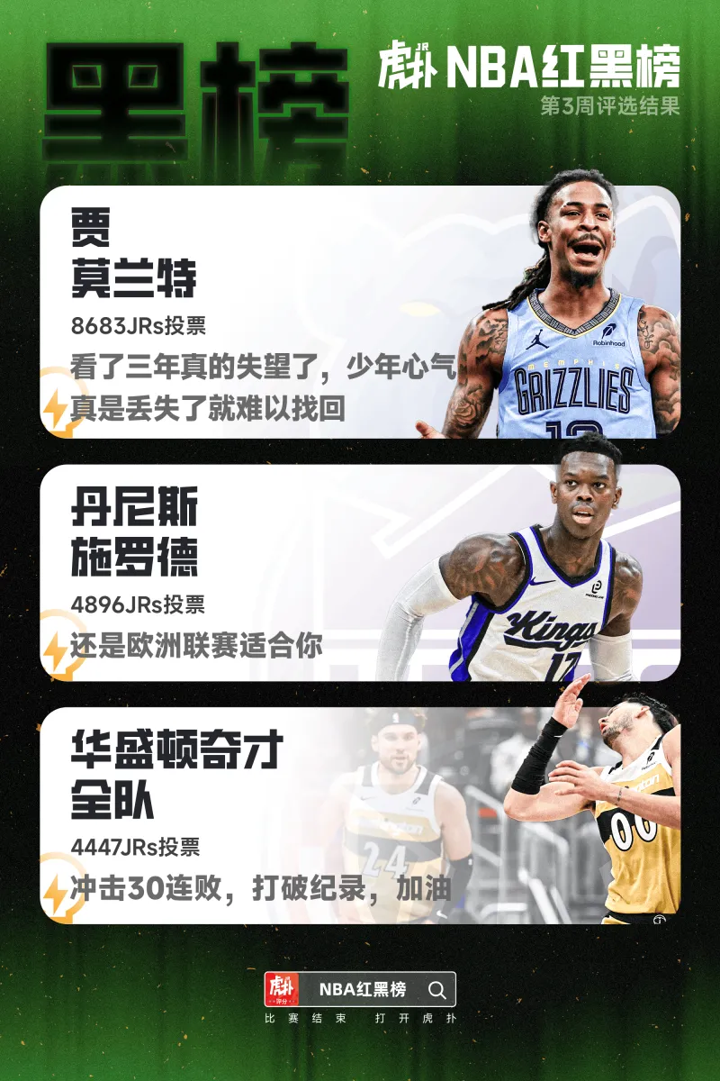 JRs,你們認為上周的黑榜球員與你心中的結(jié)果相符嗎?在評論區(qū)留下你們的看法吧!