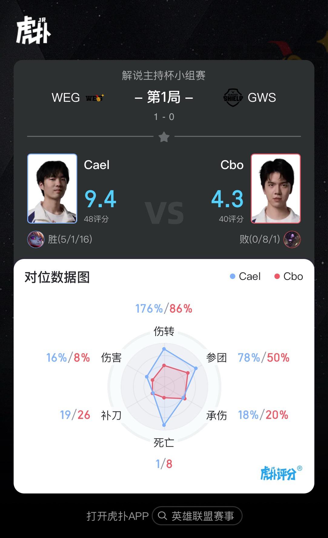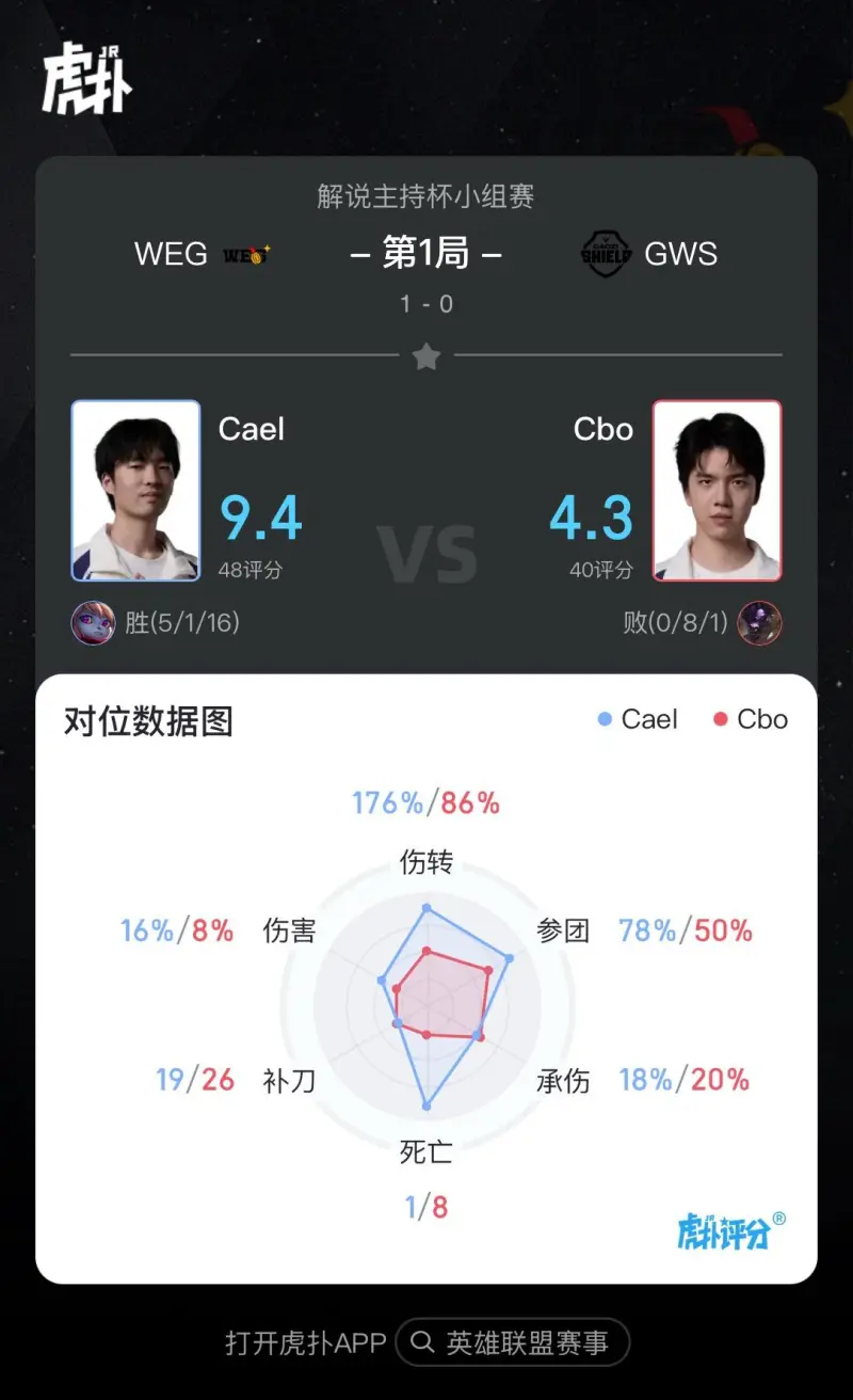 虎撲11月13日訊 在剛剛結(jié)束的WEG對陣GWS的BO1比賽中,Cael波比打出5/1/16戰(zhàn)績,績拿局拿下WEG對陣GWS對局MVP,對陣S對這是板Cl波比打他第1個MVP。