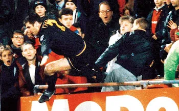這樣的模式一再重演:每當(dāng)覺(jué)得對(duì)足球的熱愛(ài)消退,坎通納總會(huì)做出戲劇性的舉動(dòng)。25歲時(shí),因向裁判扔球被禁賽的他怒火中燒,撕毀了與尼姆隊(duì)的合同,宣布過(guò)早退役?!爱?dāng)時(shí)的法國(guó)隊(duì)主教練普拉蒂尼來(lái)我家,對(duì)我說(shuō):‘你這么年輕就退役太可惜了,英格蘭或許是個(gè)不錯(cuò)的選擇。’” 隨后他在英格蘭開(kāi)啟了一段極具感染力的輝煌生涯,1994-95賽季因?qū)﹃囁m時(shí)那記臭名昭著的 “功夫踢” 被禁賽9個(gè)月,那是他效力的球隊(duì)唯一未能奪冠的賽季。他先后在利茲聯(lián)和曼聯(lián)主導(dǎo)這一成就,成為首位連續(xù)兩屆幫助兩支不同俱樂(lè)部奪得頂級(jí)聯(lián)賽冠軍的球員。