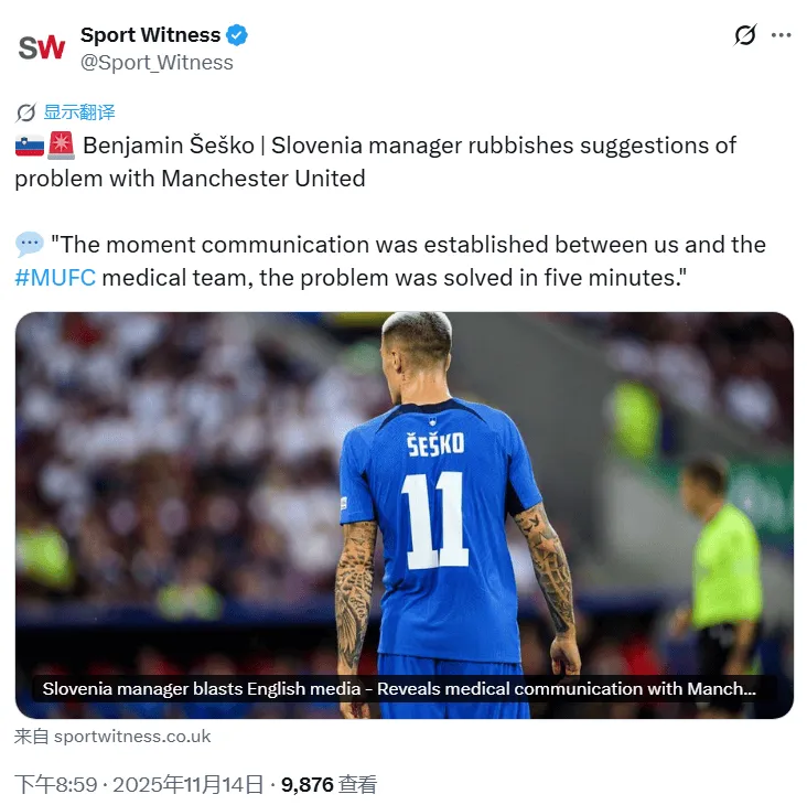 斯洛文尼亞主帥抨擊英國(guó)媒體——披露與曼聯(lián)的醫(yī)療溝通情況