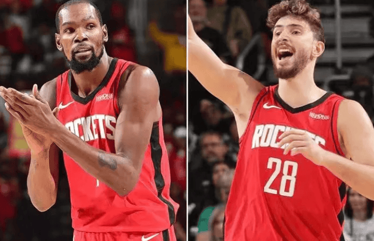 賽后,美媒NBA on ESPN曬出杜蘭特和申京的數(shù)據(jù)圖并寫道:“火箭看起來很嚇人 。??”