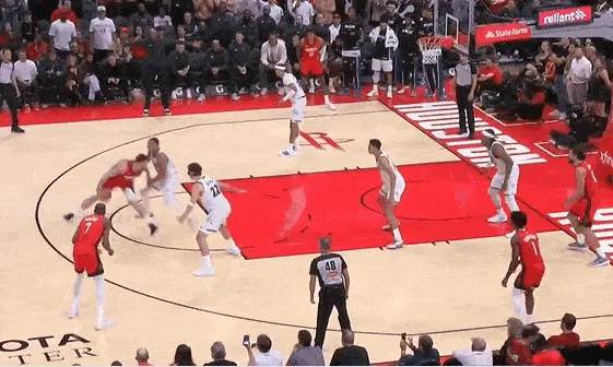 加時(shí)賽中,轉(zhuǎn)身祝申京單打貝恩轉(zhuǎn)身拋投2+1,拋投隨后與杜蘭特撞胸慶祝。特撞