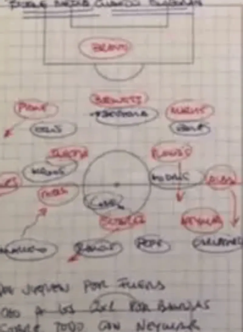 他在指示中說道: 當巴塞羅那隊從后場開始組織進攻時,我們需要采用4人對3人的執(zhí)教壓迫陣型