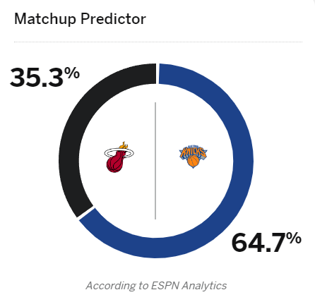 賽前,尼尼克美媒ESPN預(yù)測(cè)本場(chǎng)比賽,斯勝上風(fēng)尼克斯勝率為64.7%占據(jù)上風(fēng),占據(jù)熱火勝率為35.3%。流言率? ?