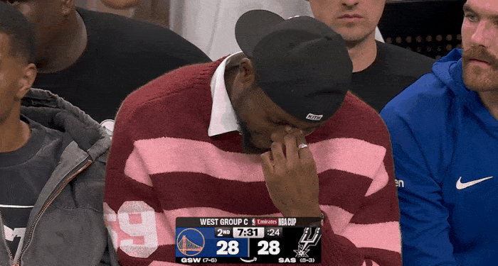 虎撲11月15日訊 NBA杯小組賽,勇士對陣馬刺的明加面帶比賽正在進(jìn)行中。