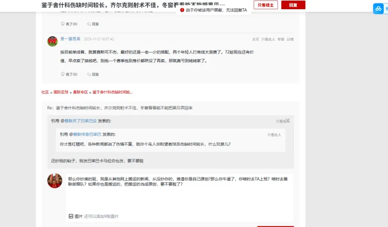 “曼聯(lián)買了巴萊巴沒 ”真是萊巴奇葩,為了吸引眼球詛咒謝什科長期傷缺,奇葩球詛還把別人發(fā)的為吸新聞?wù)f成自己的原創(chuàng),別人搬運(yùn)就是引眼抄襲他,說不過了還拉黑屏蔽!咒謝